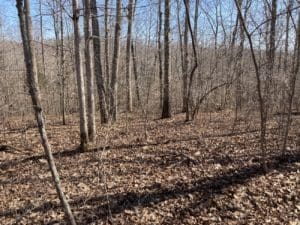 Property is rolling to hills with some good possible home sites. Property is covered in mostly hardwood trees.